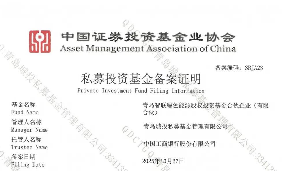市級(jí)基金改革首單落地!青島城投發(fā)起組建的智聯(lián)綠色能源基金成功備案